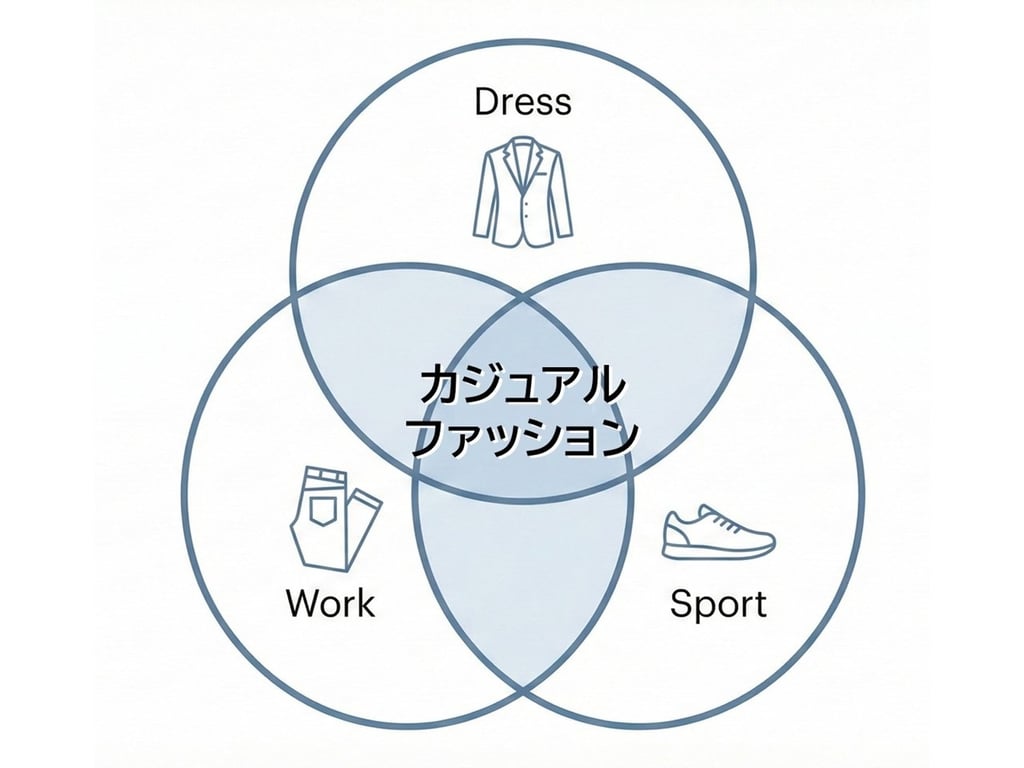 メンズカジュアルファッションは、以下の「3つの要素」で構成されています。これが本サイトを通じて共通言語(OS)となる基本フレームワークです。