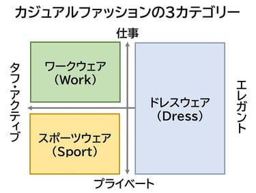 【図:カジュアルファッションの3つのカテゴリー】