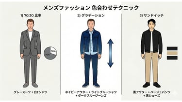 第1章では、コーディネートの3要素の一つとして「色・素材」を挙げ、「ベーシックカラー」「7:3の黄金比」について触れました 。 本章では、その理論をさらに深掘りし、明日からの服選びで迷わないための「色彩のロジック」を解説します。