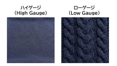 【図:ニットの「ハイゲージ」と「ローゲージ」の違いの例】