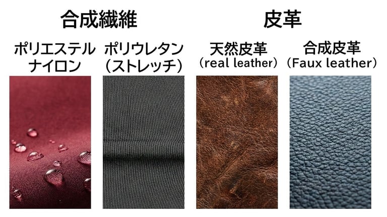 水や汚れに強く、手入れが楽。近年の技術向上により、本革と見分けがつかない高品質なものも増えています。雨の日用や、トレンドアイテムとして割り切って使うのが賢い選択です 。