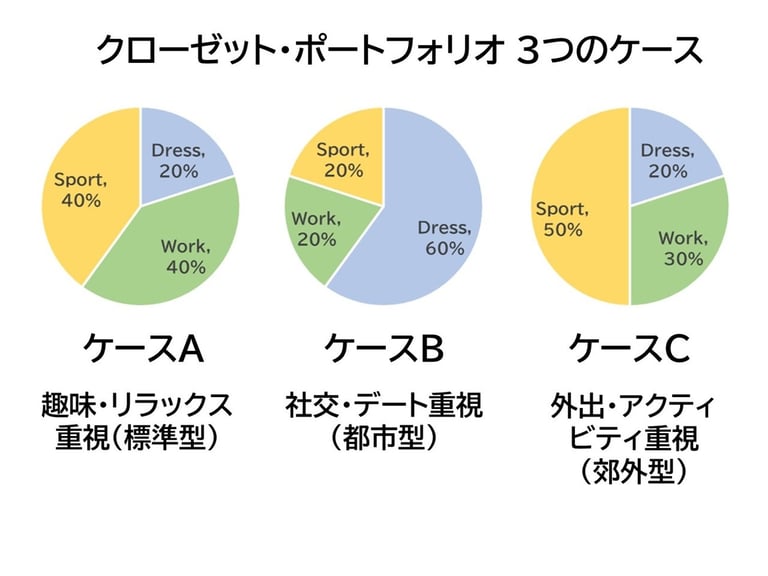 【図:クローゼット・ポートフォリオ 3つのケースの比率分布】