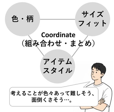 ここでは、先程述べた阻害要因から、ファッションがなぜ面倒なのかについて整理していきます。