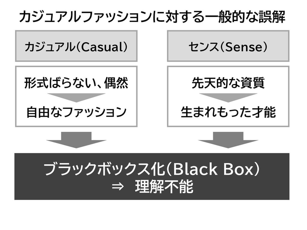 課題:カジュアルファッションは「自由で理解不能なブラックボックス」という一般的な誤解