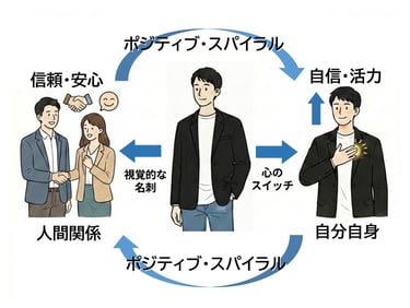 この「周囲との関係向上」「自分自身の自信・活力向上」の2つの要素のポジティブ・スパイラルを作るメリットがあるのです。