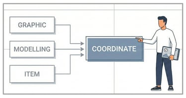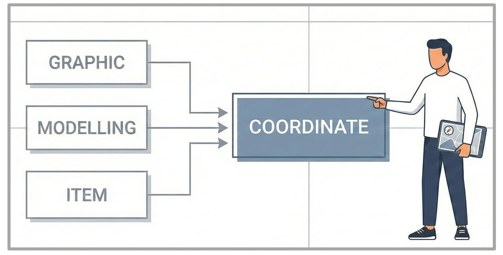 モデリング【形状と調和】: 自分の体型というキャンバスに対し、最適なシルエット(図形)を構築する。