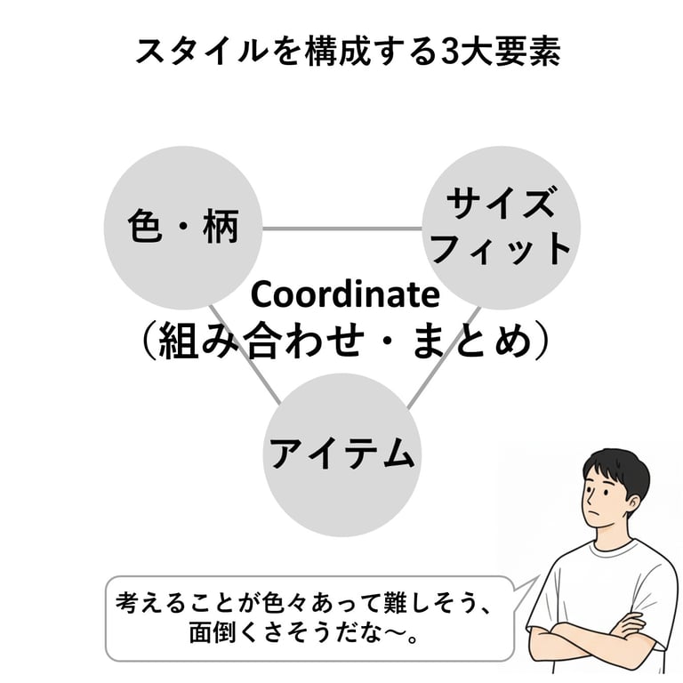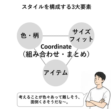 コーディネートの組み立ては、難解なパズルを組み立てる作業のように高度な思考が要求されます。しかもやっかいな事に、物理や工学の方程式のように正解がありません。