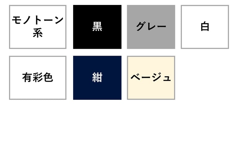 色はベーシックカラーを中心にそろえる。